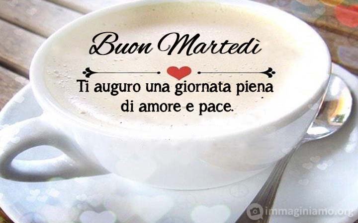 Tantissime frasi primaverili e immagini di giugno per augurare il buongiorno e buon martedì 8 giugno 2021. Immagini romantiche e frasi spiritose. Tutto il necessario per augurare un buongiorno con il cuore.   Ecco adesso le frasi e immagini per augurare il buongiorno a Maggio 2021: L'alba ha una sua misteriosa grandezza che si compone d'un residuo di sogno e d'un principio di pensiero. (Victor Hugo) Fra speranza e affanni, fra timori e rabbia, immagina che l'alba di ogni giorno sia l'ultima per te: le ore che seguiranno e non speravi più saranno tutte un incanto. (Orazio) La strada dei giusti è come la luce dell'alba, che aumenta lo splendore fino al meriggio. (Salomone) Aprire gli occhi dopo aver sognato il tuo magnifico viso, mi fa iniziare la giornata con un grandissimo sorriso. Ti auguro una serena giornata. Buon giorno mondo, buon giorno sole, ridimi ancora. Frasi buongiorno generiche Se la mattina volete regalare un sorriso ad amici e familiari, ci sono molte frasi di buongiorno che potete utilizzare e alcuni aforismi bellissimi di scrittori, poeti e personalità famosi. Eccone alcune frasi per augurare buon giornata con stile ai vostri cari: Per iniziare la giornata scelgo un caffè,per continuarla, un sorriso.(Stephen Littleword) Ogni mattino vi è data la facoltà di scegliere come agire, fare, essere. Sii il meglio di ciò che sei! (Stephen Littleword)   Vivi ogni giorno come se fosse ogni giorno. Né il primo né l’ultimo. L’unico. (Pablo Neruda) La più coraggiosa decisione che prendi ogni giorno è quella di essere di buon umore. (Voltaire) Buon Martedì 8 giugno 2021 e buongiorno   Il sorriso, permette all’anima di respirare. (Fabrizio Caramagna)   Buongiorno! Il mondo non è di chi si alza presto. Il mondo è di colui che si alza felice di alzarsi. (Anonimo) Ogni mattina noi nasciamo nuovamente. Ciò che decidiamo di fare oggi è ciò che conta davvero. (Buddha) Ci si dovrebbe svegliare ogni giorno con:un bacio della persona amata,le coccole del cane e le fusa del gatto,l’adrenalina di una bella notizia,il piacere del caffèe qualcosa di divertente che faccia sorridere.(Lucrezia Beha) Dovremmo svegliarci come i fiori, con lo sguardo rivolto al cielo e col sorriso colmo di speranza. (Linda Reale Ruffino)   Non ti chiedo miracoli o visioni, ma la forza di affrontare il quotidiano.Preservami dal timore di poter perdere qualcosa della vita.Non darmi ciò che desidero ma ciò di cui ho bisogno.Insegnami l’arte dei piccoli passi.(Antoine de Saint-Exupery) Quando ti alzi il mattino, pensa quale prezioso privilegio è essere vivi: respirare, pensare, provare gioia e amare. (Marco Aurelio) E’ un giorno nuovo: se devi fare qualcosa, mettici impegno; se non devi fare nulla, mettici stile. (Antonio Curnetta) PER LEGGERE ALTRE FRASI O GUARDARE ALTRE IMMAGINI DEL BUONGIORNO VAI A PAGINA 2: Con il giorno arrivano una nuova forza e nuovi pensieri. (Eleanor Roosevelt)   Ti mando un dolce bacio avvolto in un pensiero.Te lo mando per augurarti un caldo buongiorno.Un bacio da chi non ha mai smesso di pensarti.(Anonimo)Buon Martedì 8 giugno 2021 e buongiorno     Un sorriso nel primo volto incontrato al mattino è un benvenuto al giorno che inizia. (Banana Yoshimoto) Buon Martedì 4 Maggio 2021 e buongiorno   Ogni giorno è diverso dall’altro, ogni alba porta con sè il suo speciale miracolo, il suo istante magico, in cui si distruggono gli universi passati e nascono nuove stelle. I Navajo, infatti, insegnano ai loro bambini che ogni mattina il sole che sorge è un sole nuovo. Nasce ogni giorno, vive solo per quel giorno, muore alla sera e non ritornerà più. Dicono ai loro piccoli: il sole ha solo questo giorno, un giorno. Vivi bene la tua vita in modo che il sole non abbia sprecato il suo tempo prezioso. (Paulo Coelho) Ogni giorno è un nuovo giorno.Tutto da inventare,tutto da vivere,tutto da godere.L’alba lo posa sul palcoscenico della tua vita,e se ne va.Il nuovo giorno è tuo, t’appartiene,nessuno te lo può portare via.Puoi farne ciò che vuoi.Puoi farne un capolavoro o un fiasco.Perché sei tu il soggettista…Perché sei tu il regista…Perché sei tu il protagonista(Omar Falworth) Per essere felici bisogna allenarsi tutti i giorni. (Alberto Casiraghy) Ogni giorno ti vengono consegnate ventiquattro ore d’oro; sono tra le poche cose che, su questa terra, ti sono date gratuitamente.Se anche possedessi montagne di denaro, non potresti comprare neanche un’ora aggiuntiva. Che cosa farai con questo tesoro inestimabile?Rammenta, devi usarle, poiché ti vengono concesse una sola volta.E, se le sprechi, non potrai recuperarle.(Nicholas Sparks) Dà a ogni giornata la possibilità di essere la più bella della tua vita. (Mark Twain)   Un giorno senza sorriso è un giorno perso. (Charlie Chaplin)   Ogni giorno dovremmo ascoltare una piccola melodia, leggere una bella poesia, vedere una pittura squisita e, se possibile, dire delle parole sensibili. (Goethe)   Quando fai qualcosa di nobile e bello e nessuno lo nota, non essere triste.Il sole ogni mattina è uno spettacolo bellissimo e tuttavia la maggior parte del pubblico dorme ancora. (John Lennon) Buon Martedì 8 giugno 2021 e buongiorno   Attenzione alla paure del giorno. Amano rubare i sogni della notte. (Fabrizio Caramagna) PER LEGGERE ALTRE FRASI O GUARDARE ALTRE IMMAGINI DEL BUONGIORNO VAI A PAGINA 3: Non importa come ti senti oggi, alzati, vestiti e mostrati. (Paulo Coelho) Ogni mattina il mondo è un foglio di carta bianco e attende che i bambini, attratti dalla sua luminosità, vengano a impregnarlo dei loro colori. (Fabrizio Caramagna) Ogni giorno al tuo risveglio pensa:Oggi sono fortunato perché mi sono svegliato Sono vivo ho il dono prezioso della vitaNon lo sprecherò.Userò tutte le mie energie per migliorare me stesso, per aprire il mio cuore agli altri, lavorerò per il loro beneficio.Avrò solo pensieri gentili verso gli altri,non mi arrabbierò e non penserò male di nessuno.Aiuterò gli 