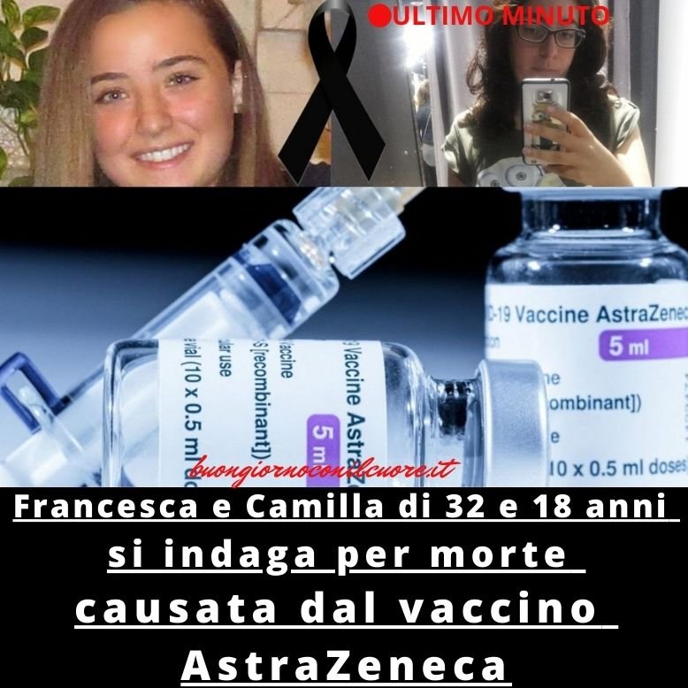 Francesca e Camilla di 32 e 18 anni: Si indaga per morte causata dal vaccino AstraZeneca