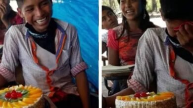Un bambino povero riceve per la prima volta una torta di compleanno dalla sua insegnante: